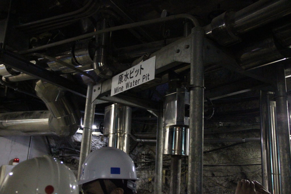 スーパーカミオカンデ入り口。ここで靴を脱いで中に入ります。スーパーカミオカンデは坑内入り口から1.7Km、鉱山の上から1000メートルの深さに有ります。