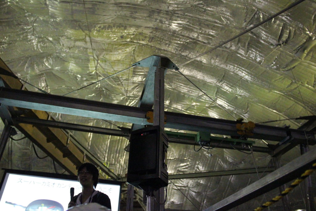 そしてついにスーパーカミオカンデに・・。ですが当然本体の中は見ることができません。中を見ることができたのは改修工事の時だけだそうです。この写真はスーパーカミオカンデの上に座って天井部分をみたところ。スーパーカミオカンデの上で東京大学の方からスーパーカミオカンデの説明がありました。手前の方が説明された先生です。説明の後質疑応答もあり、丁寧に答えていただけました。